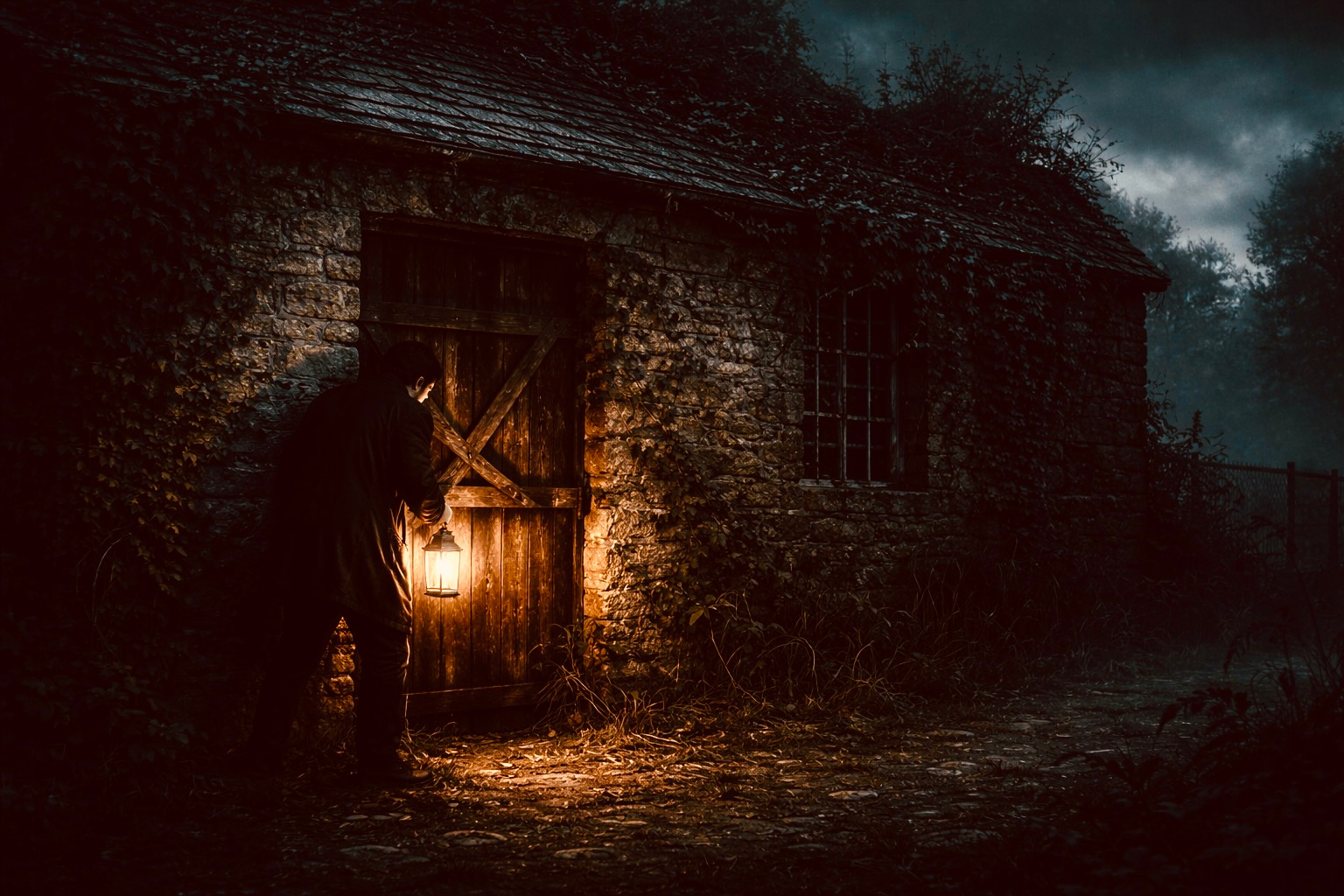 Every night at dusk I take the lantern past the church and down the track to the old dairy, where the doors have been braced shut as if from the inside. The village calls it a ruin. Ivy covers the bars on the windows. Visitors are never brought near it.